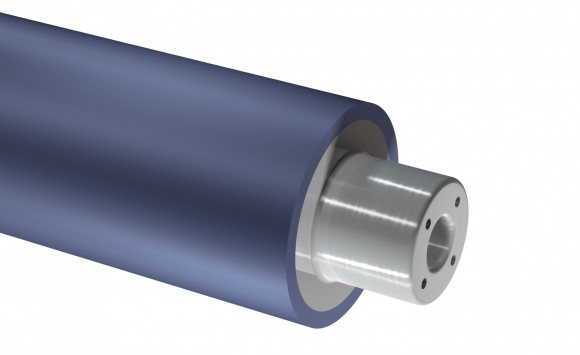 Rullo con anima in acciaio rivestito con elastomero Idrolast costruito secondo le specifiche/disegno cliente e rettificato a misura.